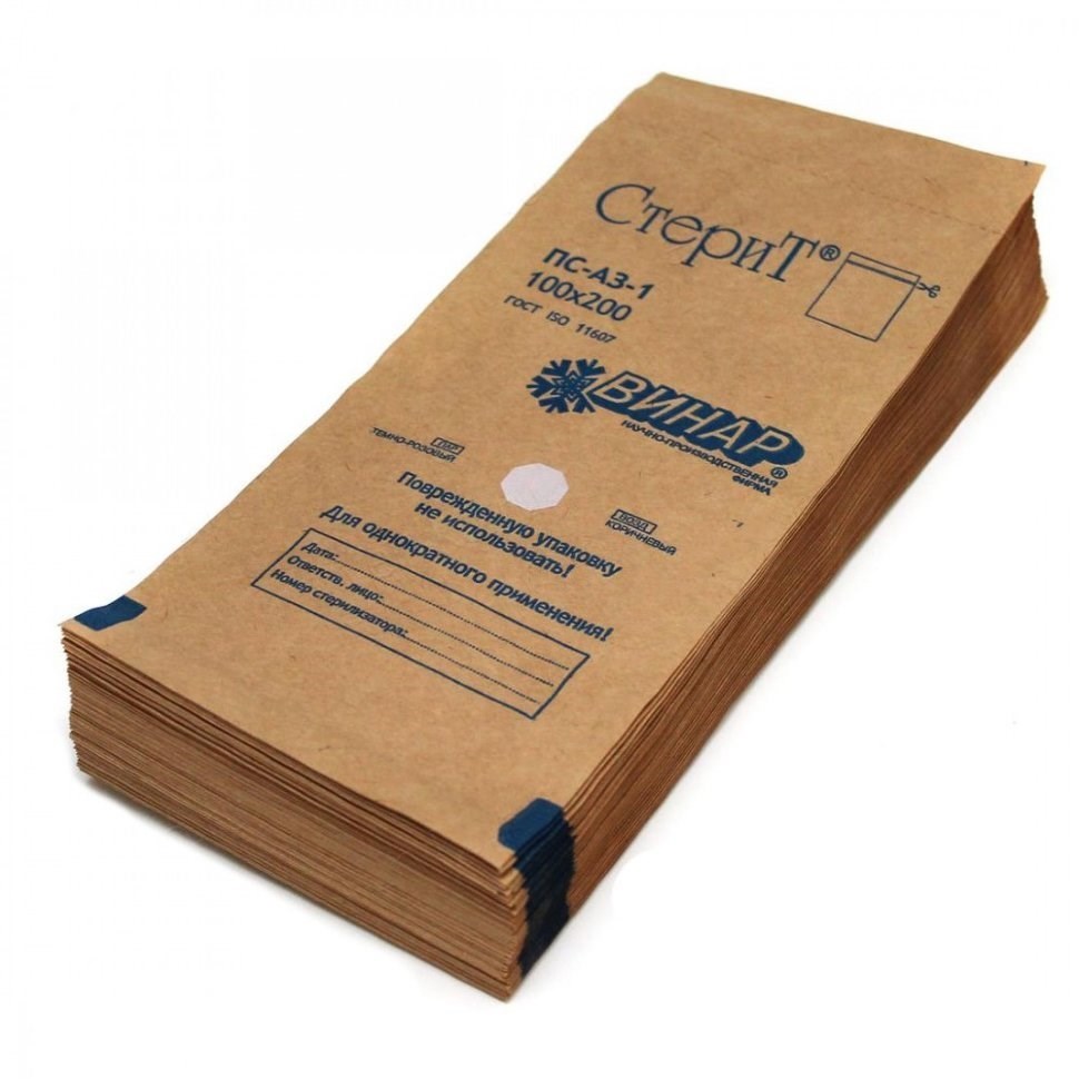 Пакеты для паровой/воздушной стерилизации СтериТ 100 х 200 мм, крафт, самоклеящийся (100 шт/уп.) ВИНАР