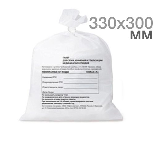 Пакеты для сбора отходов, класс А, 330х300мм / белые, ПО-01, (100шт), МедПак