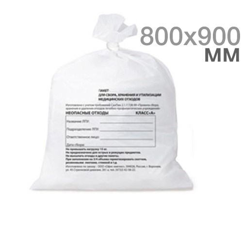Описание: Пакеты для сбора отходов, класс А, 800х900мм / белые, ПО-01, (100шт), МедПакПакеты полиэтиленовые для сбора и хранения медицинских отходов класс Б "МедКом".