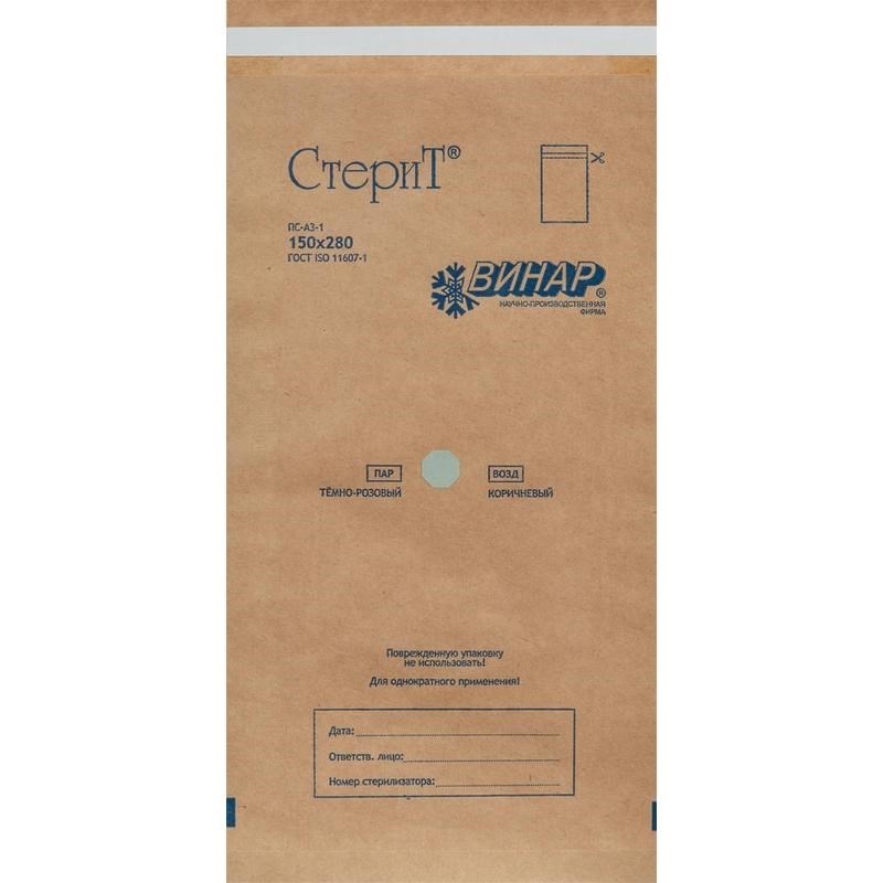 Пакеты для паровой/воздушной стерилизации СтериТ 150х280 мм, крафт, самоклеящийся (100 шт/уп.) ВИНАР