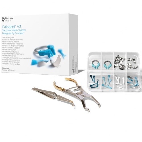 Система Palodent V3 – это инновационная секционная матричная система с никель-титановыми кольцами, анатомическими матрицами и адаптивными самонаправляющимися клиньями, которая обеспечивает предсказуемые, плотные контактные пункты и реставрации, которые точно повторяют естественную анатомию зуба.