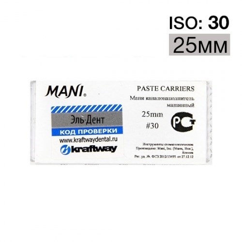 Описание: Paste carriers ISO 30 (25мм) упаковка 4 шт. MANIMani Paste Carriers - Машинный стоматологический эндодонтический инструмент с рабочей частью в форме спирали. Материал рабочей части - нержавеющая сталь, материал хвостовика – нержавеющая сталь.