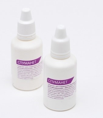 3 капли средства "СПУМАНЕТ" добавляют к 1 л рабочего раствора одного из вышеуказанных дезинфицирующих средств.