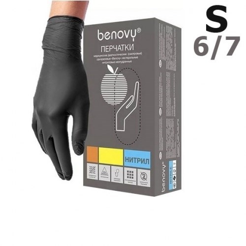 Перчатки ЧЕРНЫЕ нитрил Benovy S (6/7), 3г. 100шт.