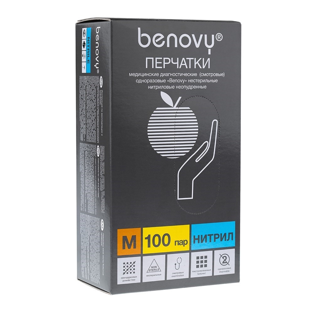 86427______МMNFTB003 Перчатки медицинские диагностические одноразовые нестерильные нитриловые неопудренные Benovy M голубые текстурированные на пальцах пара/1000/100