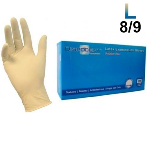 Описание: Перчатки Dispodent латекс L (8/9)Перчатки медицинские одноразовые смотровые (диагностические) Dispodent из натурального латекса 2-х кратного хлорирования, без пудры. р-р L (8/9).
