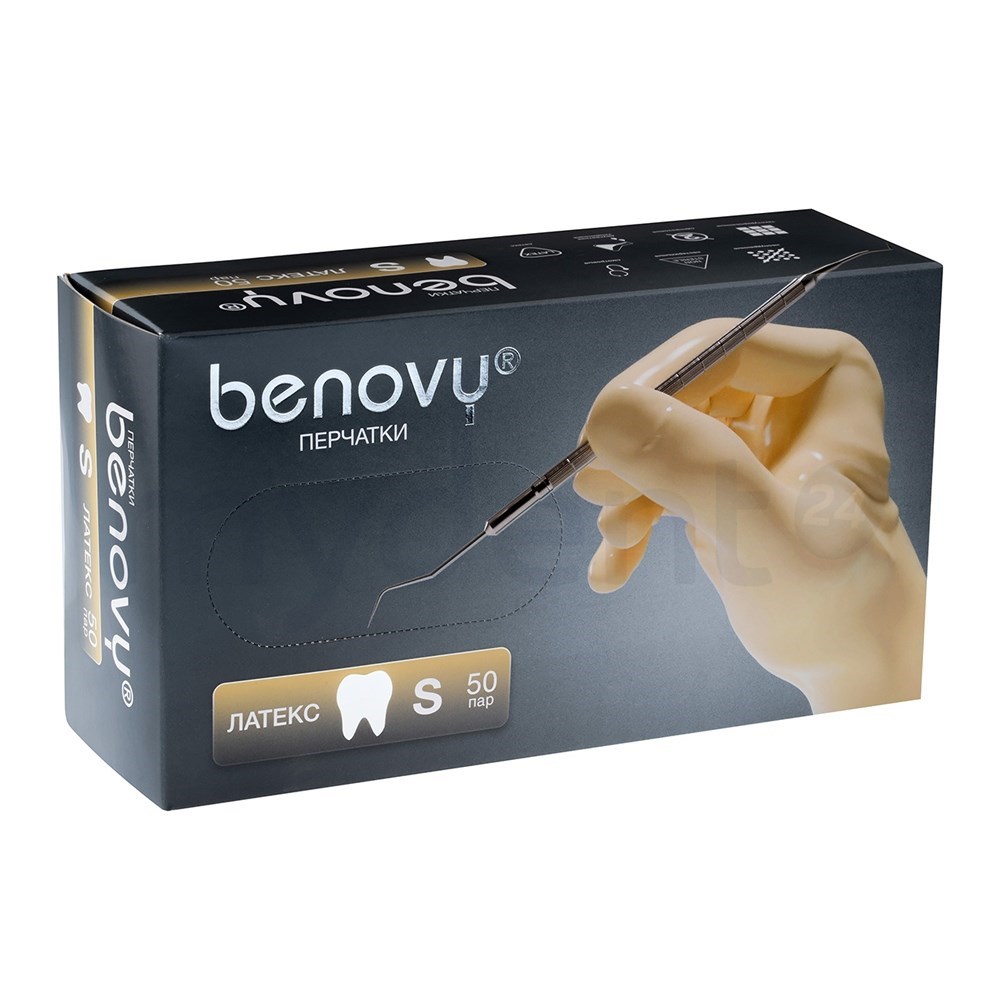 89639______Перчатки медицинские диагностические (смотровые) одноразовые нестерильные "BENOVY" из натурального латекса текстурированные неопудренные с двукратной хлоринацией (манжета с валиком); цвет: натуральный, размер S (вид 122540) (уп. 50 пар)