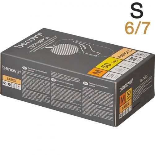 Описание: Перчатки латексные Benovy S (6/7), 100шт.Перчатки медицинские диагностические (смотровые) одноразовые нестерильные «BENOVY» из натурального латекса текстурированные неопудренные с двукратной хлоринацией (манжета с валиком), цвет: натуральный.