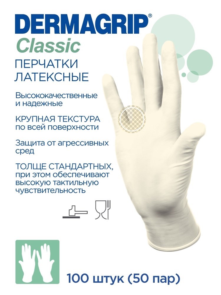 Перчатки латексные Dermagrip S (6-7) - 50 пар