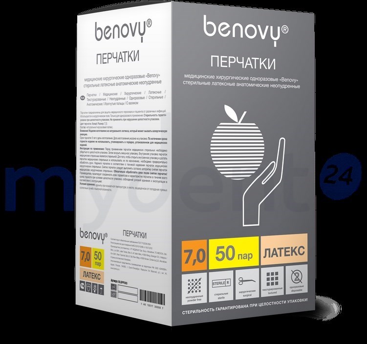 86411______Перчатки хирургические латексные анатомические неопудренные стерильные, цвета: белый, размер 7.5 (вид 122630) упак. 50 пар.