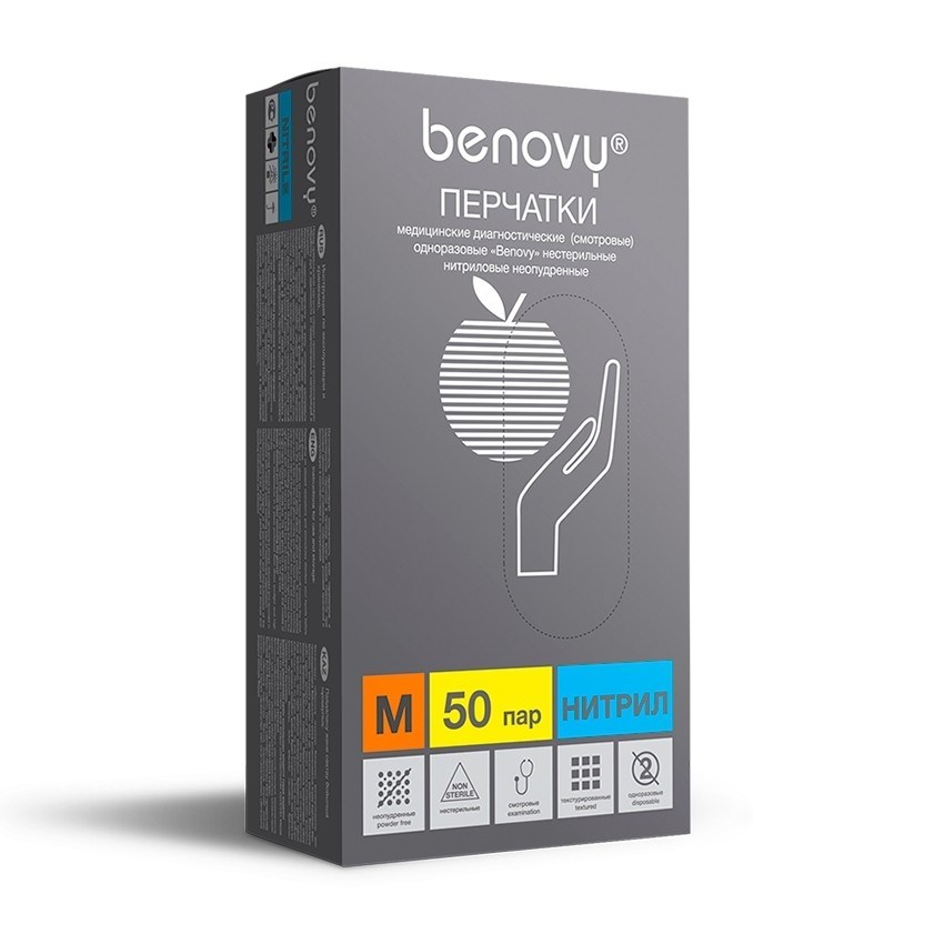 Перчатки мед. диагност. однораз. нестер. нитрил.неопудр. Benovy M голубые текстур. на пальцах, 50пар