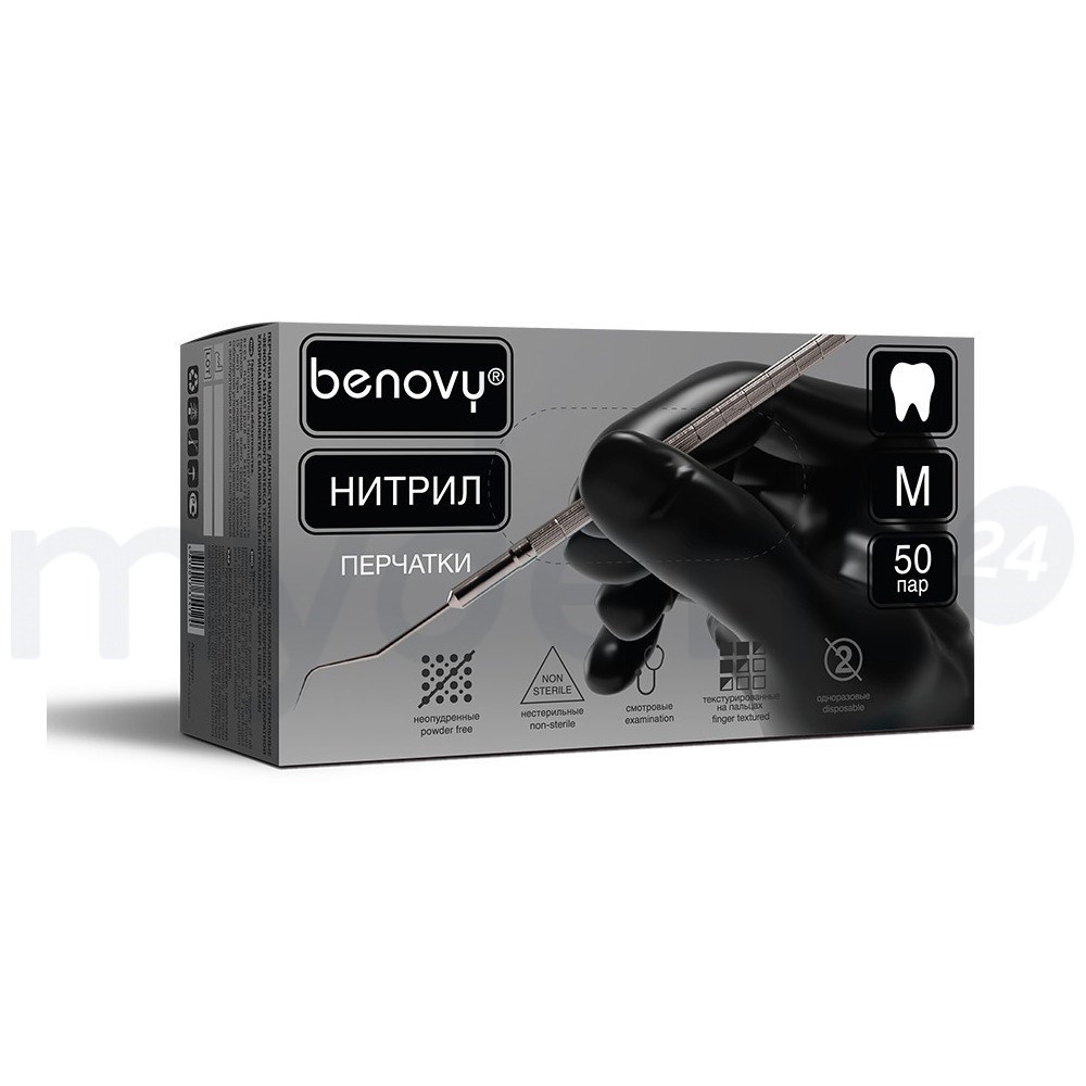Перчатки медицинские диагностические, цвет: чёрный, размер M, упак. 50 пар, 87882
