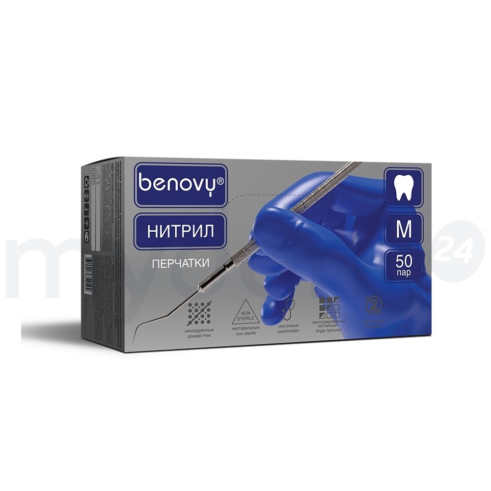 87916______Перчатки медицинские диагностические (смотровые) одноразовые нестерильные "BENOVY" нитриловые текстурированные на пальцах неопудренные с однократной хлоринацией (манжета с валиком); цвет: фиолетово-голубой, размер XS (вид 185830) упак. 50 пар.