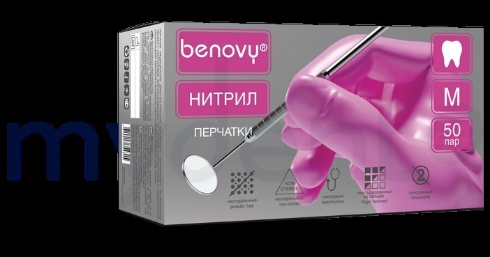 Перчатки медицинские диагностические (смотровые) одноразовые нестерильные "BENOVY" нитриловые текстурированные на пальцах неопудренные с однократной хлоринацией (манжета с валиком); цвет: розовый , размер S (вид 185830) упак. 50 пар.