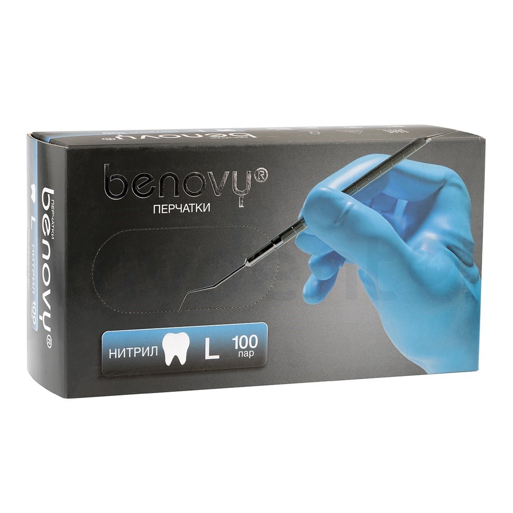90113_____Перчатки медицинские диагностические (смотровые) одноразовые нестерильные "BENOVY" нитриловые текстурированные на пальцах неопудренные с однократной хлоринацией (манжета с валиком); цвет: голубой, размер L (вид 185830) упак. 100 пар
