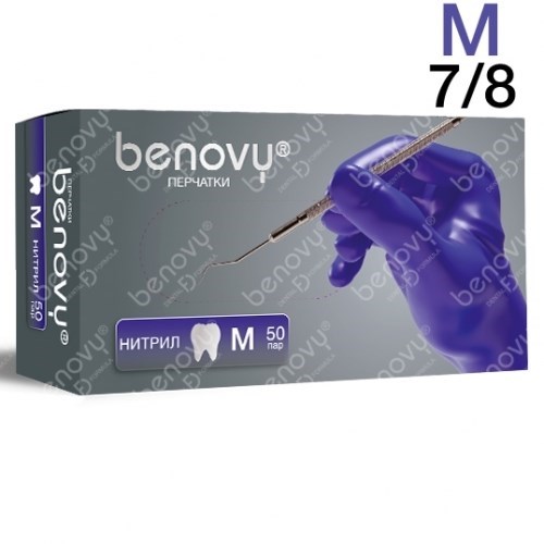 Перчатки Нитриловые Benovy Фиолетовые М (7/8), 100шт. 3,5 г.