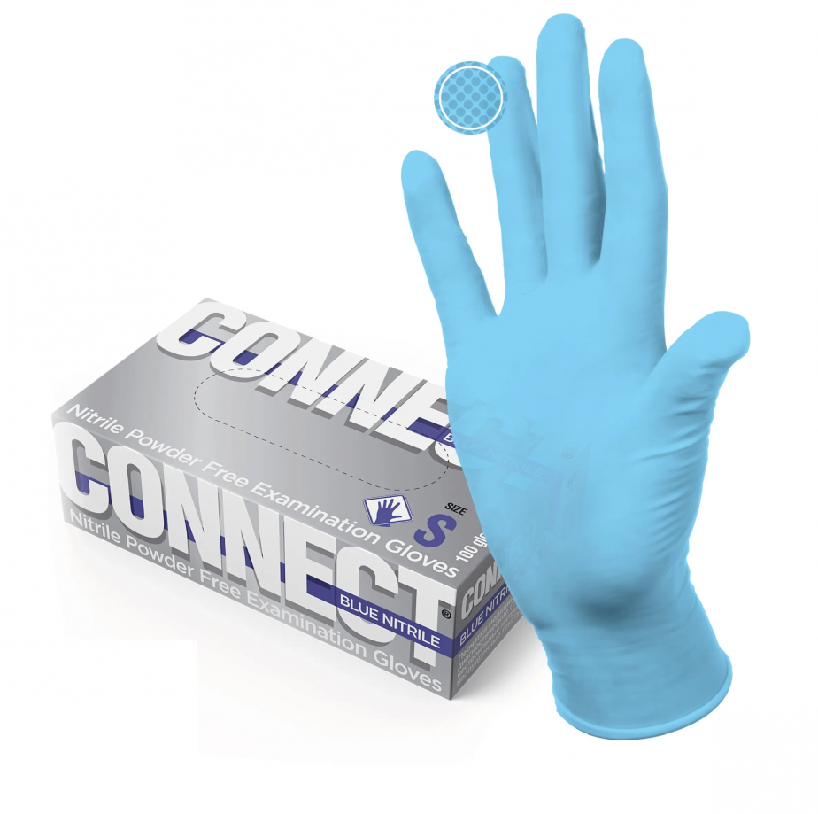 Перчатки медицинские диагностические (смотровые) нестерильные нитриловые неопудренные текстурированные *CONNECT® BLUE NITRILE