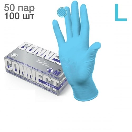 Перчатки Нитриловые CONNECT BLUE NITRILE L Голубые (100 шт.) (50 пар) 3,7 гр