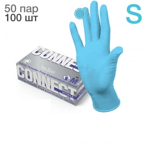 Перчатки Нитриловые CONNECT BLUE NITRILE S Голубые (100 шт.) (50 пар) 3,7 гр