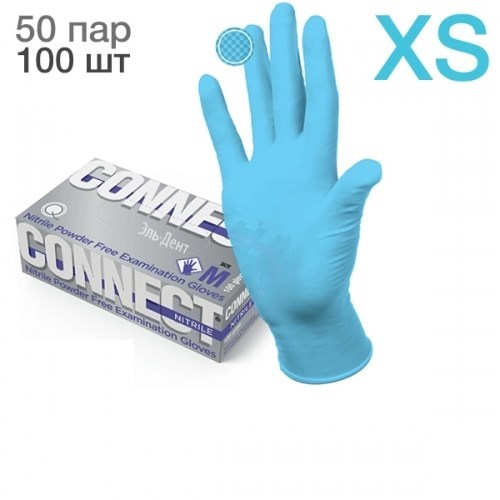 Перчатки Нитриловые CONNECT BLUE NITRILE XS Голубые (100 шт.) (50 пар) 3,7 гр