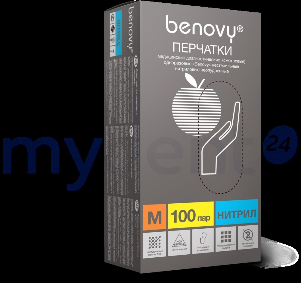 Перчатки нитриловые неопудренные нестерильные смотровые, цвета: голубой, размеры: M, уп. 100 пар, 86380