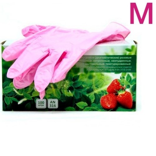 Перчатки Нитриловые РОЗОВЫЕ M (7/8) 100 шт