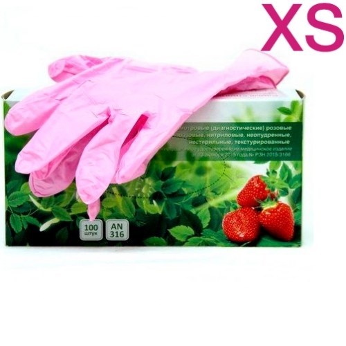 Перчатки Нитриловые РОЗОВЫЕ XS (5/6) 100 шт