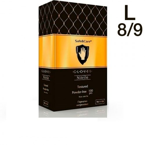 Перчатки Нитриловые Safe&Care L, Черные (8/9) смотровые, 100 шт