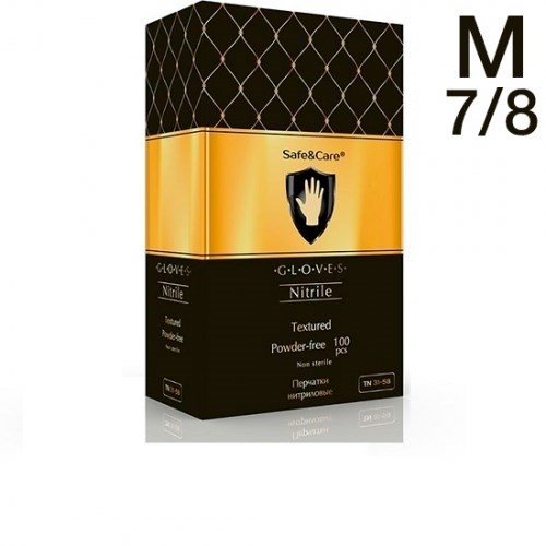 Перчатки Нитриловые Safe&Care М, Черные (7/8) смотровые, 100 шт