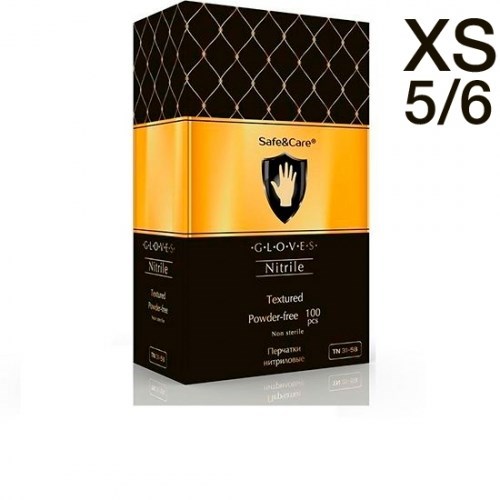 Перчатки Нитриловые Safe&Care XS, Черные (5/6) смотровые, 100 шт