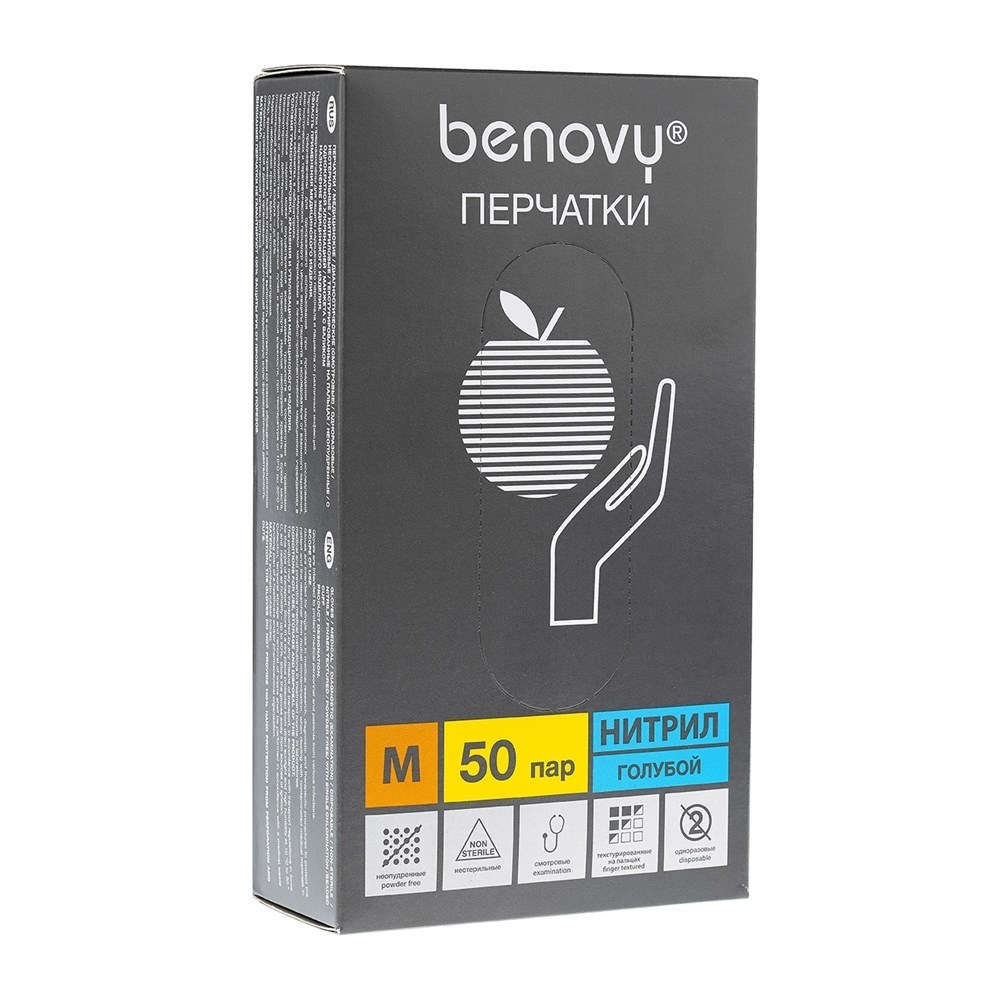 Перчатки нитриловые текстурированные на пальцах BENOVY", цвет: голубой, размер M (уп. 50 пар)