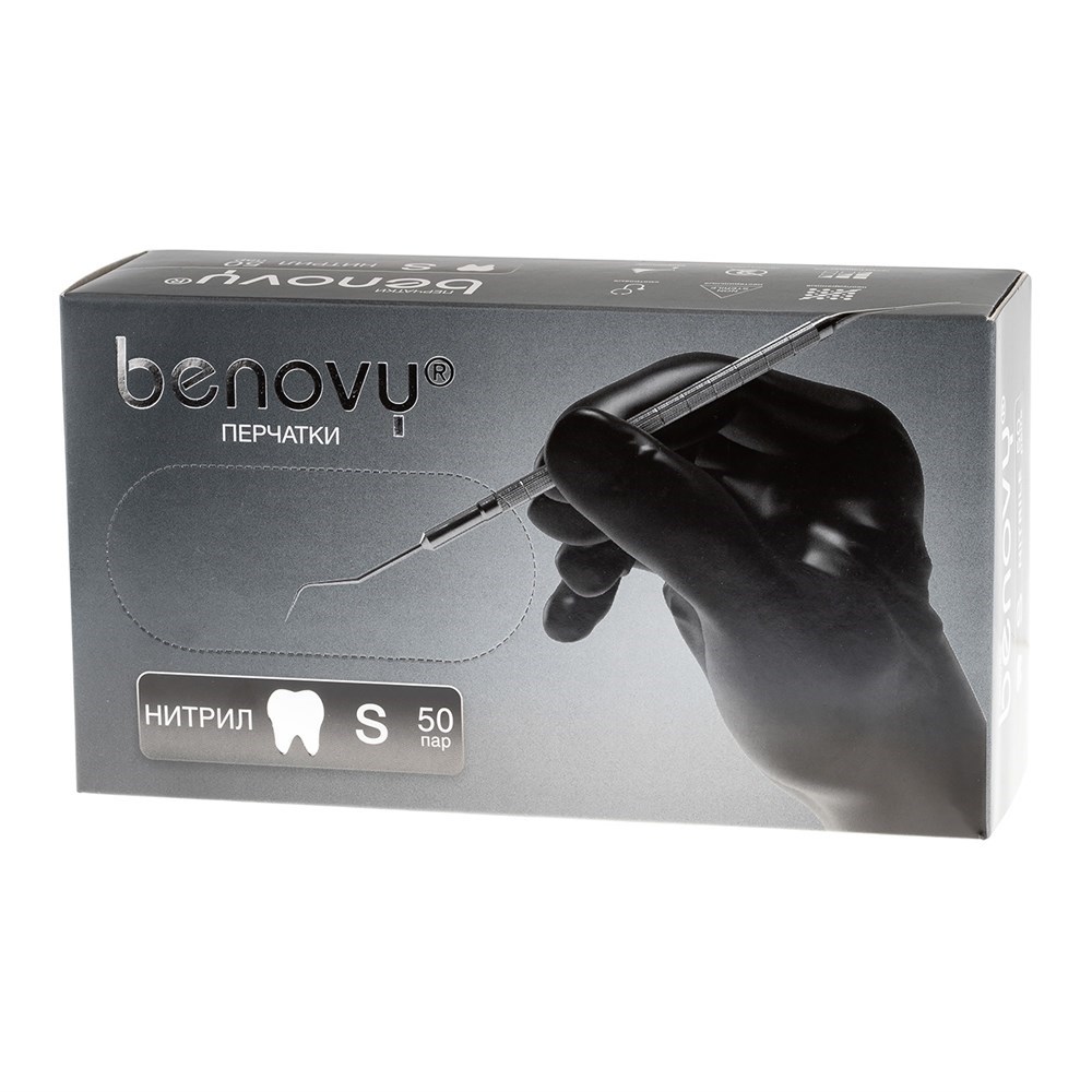89779_Перчатки нестерильные «BENOVY» нитриловые текстурированные неопудренные с однократной хлоринацией (манжета с валиком); цвет: черный, размер S (вид 185830) 50 пар