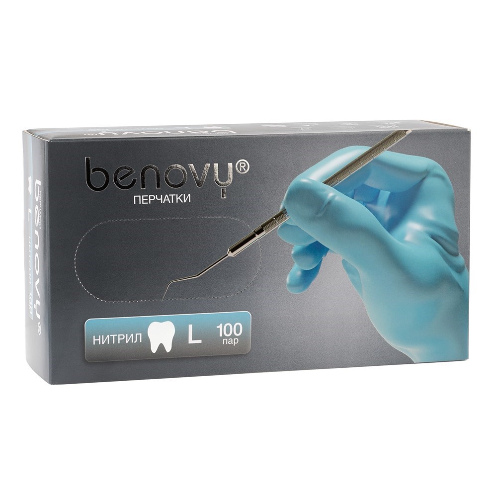 89819_Перчатки нестерильные "BENOVY" нитриловые текстурированные неопудренные с однократной хлоринацией (манжета с валиком); цвет: голубой, размер L (вид 185830) упак. 100 пар