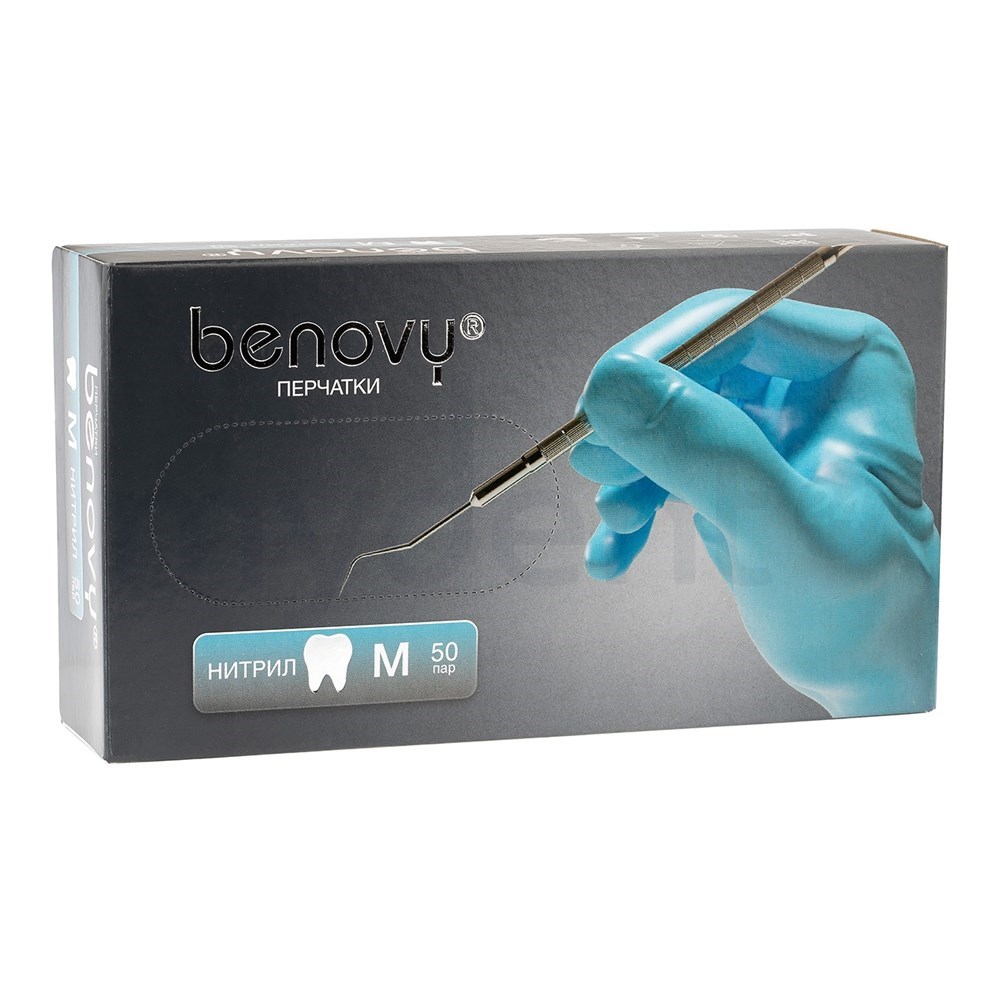 89810______Перчатки медицинские диагностические (смотровые) одноразовые нестерильные "BENOVY" нитриловые текстурированные на пальцах неопудренные с однократной хлоринацией (манжета с валиком); цвет: голубой, размер M (вид 185830) (уп. 50 пар)