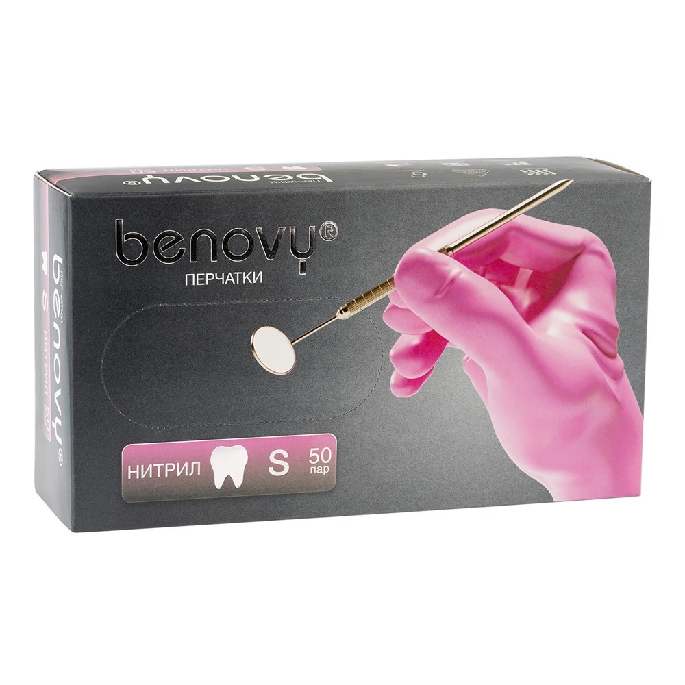 89676_Перчатки нестерильные "BENOVY" нитриловые текстурированные неопудренные с однократной хлоринацией (манжета с валиком) розовый, размер S (вид 185830) упак. 50 пар