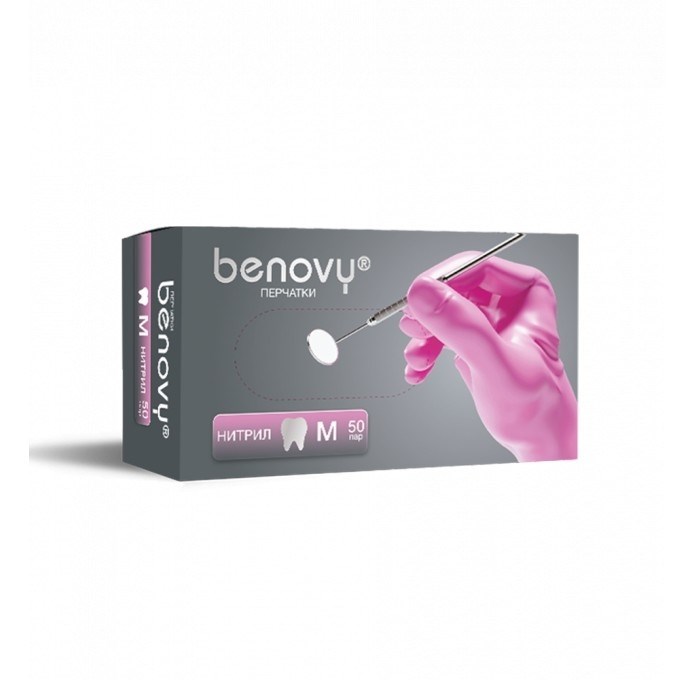 89675_Перчатки нестерильные "BENOVY" нитриловые текстурированные неопудренные с однократной хлоринацией (манжета с валиком) цвет: розовый, размер XS (вид 185830) упак. 50 пар