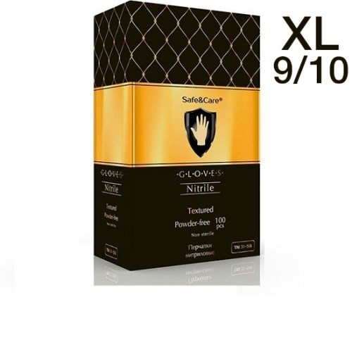 ОПИСАНИЕ: ПЕРЧАТКИ НИТРИЛОВЫЕ SAFE&CARE XL, ЧЕРНЫЕ (9/10) СМОТРОВЫЕ, 100 ШТ.