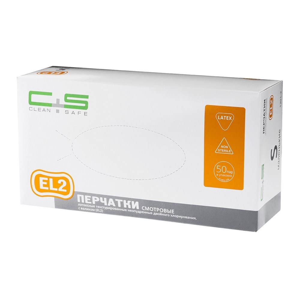 Перчатки смотр.латекс. текстур. неопудр. двойн. хлорир. с валиком (EL2), Clean+Safe, 1, S (уп. 50 пар)