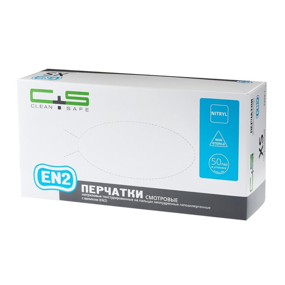 Перчатки смотровые нитрил. текстур.на пальцах неопудр.с валиком (EN2), Clean+Safe, 4, XS (уп. 50 пар