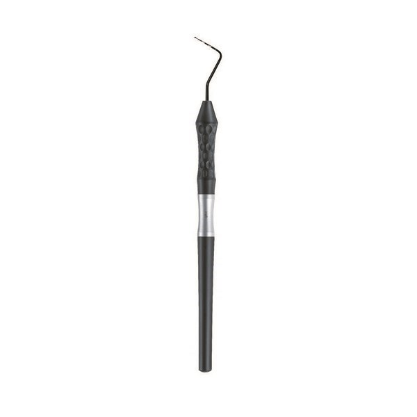 Периодонтометр, длина 160 мм, DB874R, B.Braun (Aesculap, Германия) состоит из эргономичной ручки черного цвета, изогнутой рабочей части с плавными переходами и нитридным покрытием, на которой нанесена точная лазерная маркировка. Инструмент предназначен для выявления в ткани зуба зоны, которая подверглась разрушению кариесом.