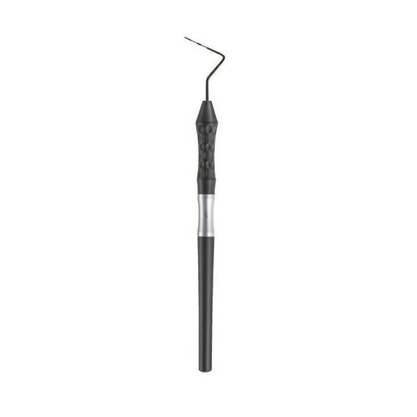 Зонд стоматологический (периодонтометр) PCP11, длина 155 мм, DB868R, B.Braun (Aesculap, Германия) состоит из эргономичной ручки черного цвета, изогнутой рабочей части с плавными переходами и нитридным покрытием, на которой нанесена точная лазерная маркировка. Инструмент предназначен для выявления в ткани зуба зоны, которая подверглась разрушению кариесом. В самой широкой части носика стоматологического зонда - 1 мм, в самом узком (на конце) - нет 1 мм.