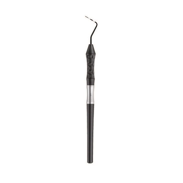 Периодонтометр, PCP12, длина 155 мм, DB862R, B.Braun (Aesculap, Германия) состоит из эргономичной ручки черного цвета, изогнутой рабочей части с плавными переходами и нитридным покрытием, на которой нанесена точная лазерная маркировка. Инструмент предназначен для выявления в ткани зуба зоны, которая подверглась разрушению кариесом.