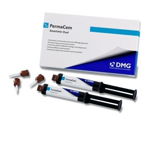 Описание: Permacem Smartmix Dual (2 шприца х 10гр) композитный цемент двойного отверждения 212035, DMGPermaCem-Dual – это универсальный, адгезивный, композитный цемент двойного отверждения для постоянного крепления непрямых реставраций в сочетании с адгезивом для эмали и дентина, таким как LuxaBond (система Total Etch) или Contax + Activator (система Self Etch).