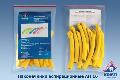 Описание: Пылесосы многоразовые АН 16 (10шт.) ЖЕЛТЫЕ, КристидентМногоразовые пылесосы предназначены для всасывания (аспирации) из ротовой полости пациента аэрозолей и твердых частиц, находящихся во взвешенном состоянии в жидкости при проведении стоматологических процедур, с целью удаления ограниченного объема жидкости (слюны) и взвеси изо рта пациента.