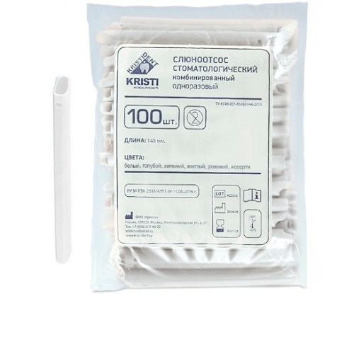Наконечник аспирационный, комбинированный, одноразовый - (Слюноотсос стоматологический одноразовый, комбинированный по Регистрационному удостоверению РЗН 2016/4053 от 11.05.2016г.) предназначен для всасывания (аспирации) из ротовой полости пациента аэрозолей и твердых частиц, находящиеся в жидкости во взвешенном состоянии при проведении стоматологических процедур, с целью удаления ограниченного объема жидкости (слюны) и взвеси изо рта пациента.