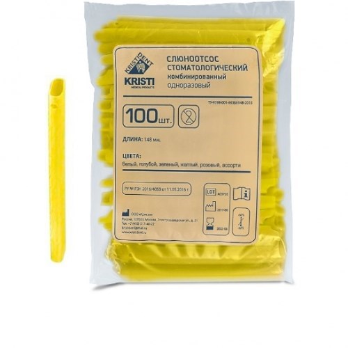 Наконечник аспирационный, комбинированный, одноразовый - (Слюноотсос стоматологический одноразовый, комбинированный по Регистрационному удостоверению РЗН 2016/4053 от 11.05.2016г.) предназначен для всасывания (аспирации) из ротовой полости пациента аэрозолей и твердых частиц, находящиеся в жидкости во взвешенном состоянии при проведении стоматологических процедур, с целью удаления ограниченного объема жидкости (слюны) и взвеси изо рта пациента.