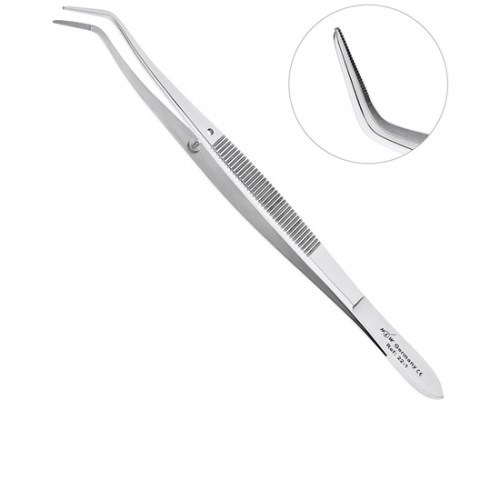 Пинцет HLW 22-1 стоматологический Meriam 16 см, изготовлен компанией HLW Dental Instruments, инструмент предназначен для захвата, а также удерживания мягких тканей при проведении манипуляций в ротовой полости. Двойной изгиб по плоскости облегчает ввод пинцета в глубокие и труднодоступные участки полости рта. Удлиненные и тонкие бранши инструмента обеспечивают хороший обзор операционного поля. Рабочие поверхности пинцета с внутренней стороны снабжены продольными атравматическими насечками для деликатного захвата и удерживания мягких тканей в ротовой полости. Стоппер на внутренней поверхности инструмента способствует плотному смыканию рабочих частей пинцета и предотвращает их расхождение друг относительно друга. Внешние поверхности ручек имеют горизонтальные ретенционные насечки для более удобной фиксации пинцета в руке.