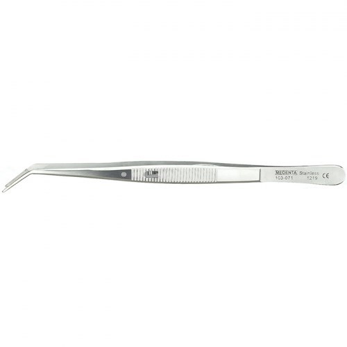 Пинцет изогнутый с фиксатором ребристый, с насечками 103-071-P, МЕДЕНТА