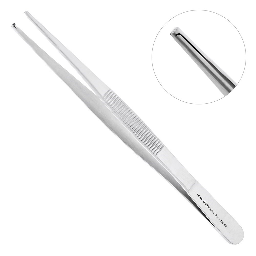 Компанией HLW Dental Instruments изготовлен хирургический пинцет, предназначенный для внесения и удаления изо рта вспомогательных и диагностических принадлежностей, а также различных манипуляций в ротовой полости.