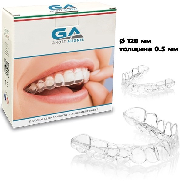 Пластины Ghost Aligner для изготовления элайнеров круглые, толщина 0,5 мм, диаметр 120 мм, 20 шт/уп